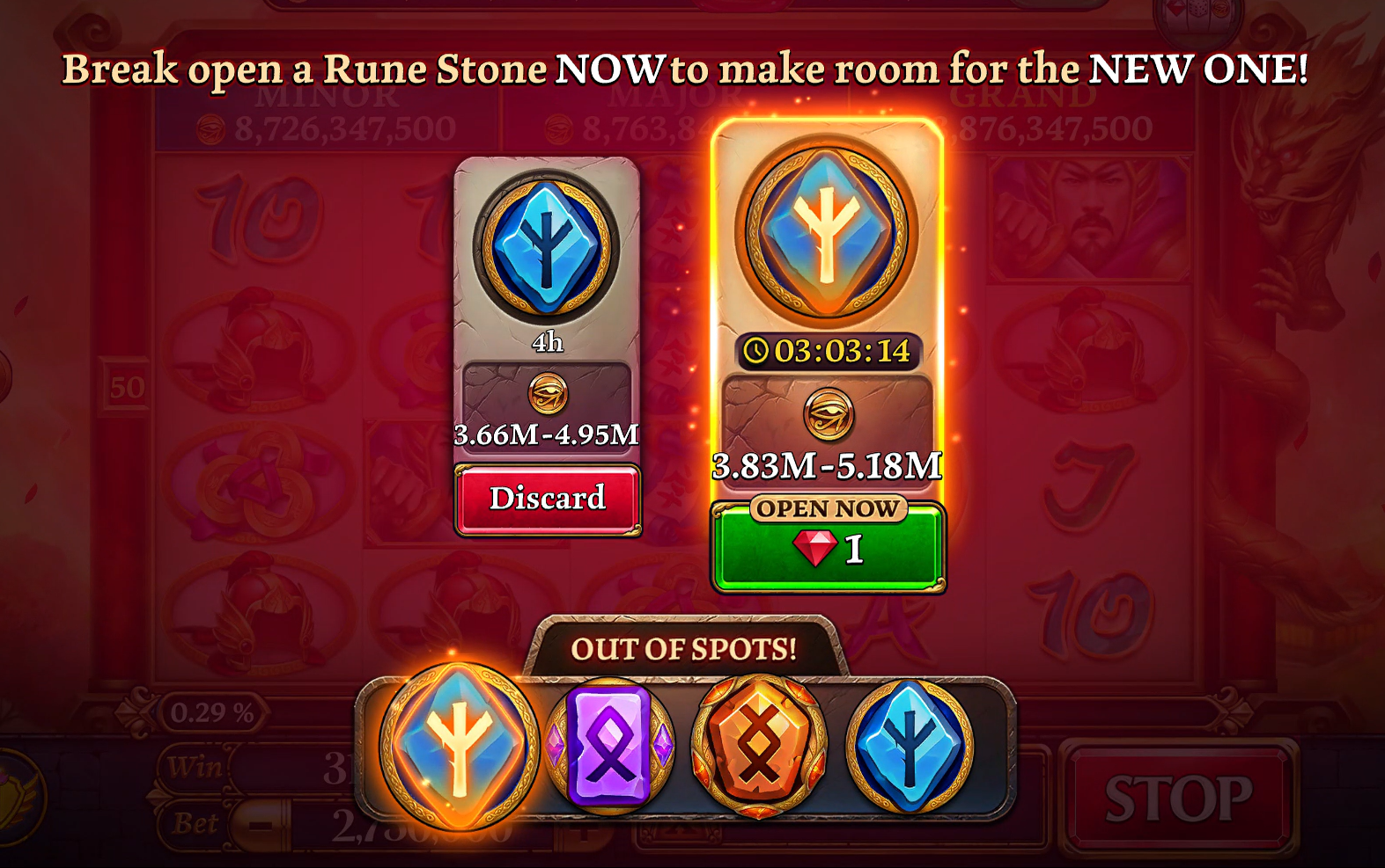 - You can open one of your existing Runes earlier (using gems) to make space for the new one, or