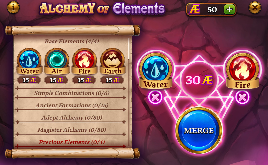 ¡Alquimia de los Elementos es un modo de juego mágicamente perfecto donde puedes descubrir nuevos elementos combinándolos y ganar recompensas asombrosas en el camino!